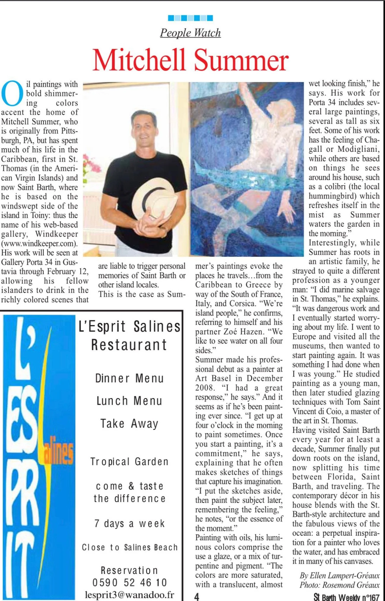 Mitchell studied the techniques of oil painting and glazing for several years with Tom Saint Vincent di Coio, in St Thomas, a master of color perspective. Mitchell left St Thomas in 1997 and worked in Florida, New York and California. He was never able to completely stay away from the Caribbean, and now spends part of every year in the French West Indies.